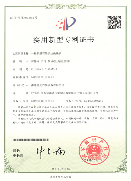 實用新型專利 :一種新型石墨波紋換熱板 專利號:ZL 2019 2 0198373.2