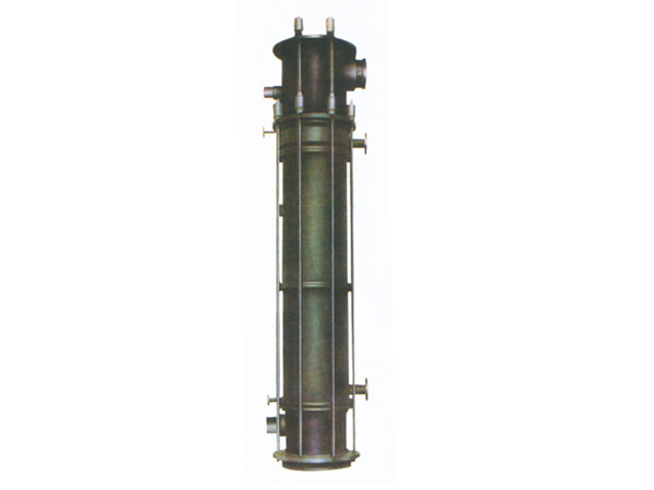 本設備采用單元換熱塊拼接結構,換熱塊之間采用聚四氟乙烯O形圈或膨脹PTFE密封,設備整體加裝壓力彈簧作熱脹冷縮的自動補償機械。相對于YKA圓塊孔式換熱器,本設備頂部加裝吸收塔節(jié),底部加裝氣液分離器。