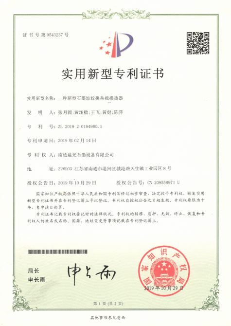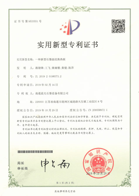 實(shí)用新型專利 :一種新型石墨波紋換熱板 專利號(hào):ZL 2019 2 0198373.2
